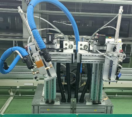 本喇叭自动化生产组装线比较重要的结构的是定位装置,使喇叭在线上精确移动,不会抖动及偏移原来的位置。同时涂胶及取放机构采用高精度伺服电机控制配合高精度流量传感器,实现涂胶及取放的精确性,从而满足用户对精度的需求使自动线成品的良品率得到了很大的提升。 同时具配记忆存储功能,可对产品当前的整线工作设置点及配方进行建模存档,待下次生产时直接调出使用即可,避免人工调机耗时长、有一定的技能水平的要求,,一方面提升了产品品质,另一方面又节省了人工成本,将喇叭的质量推上了另一个台阶。